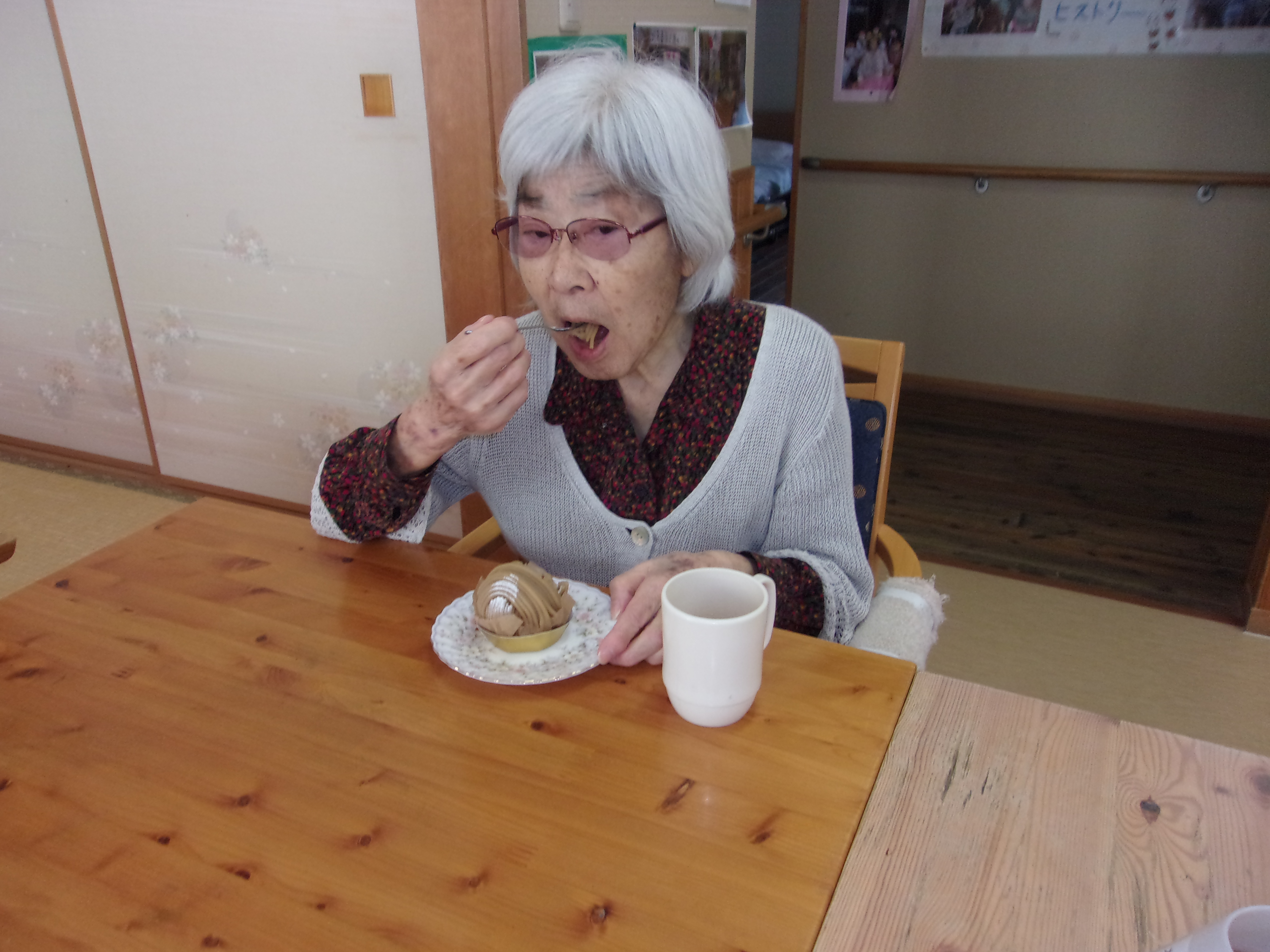 ③ ケーキバイキング…シャトレーゼでケーキを購入し、お好きなケーキを選んでいただきました。ケーキを食べる時の表情は幸せいっぱいです❣